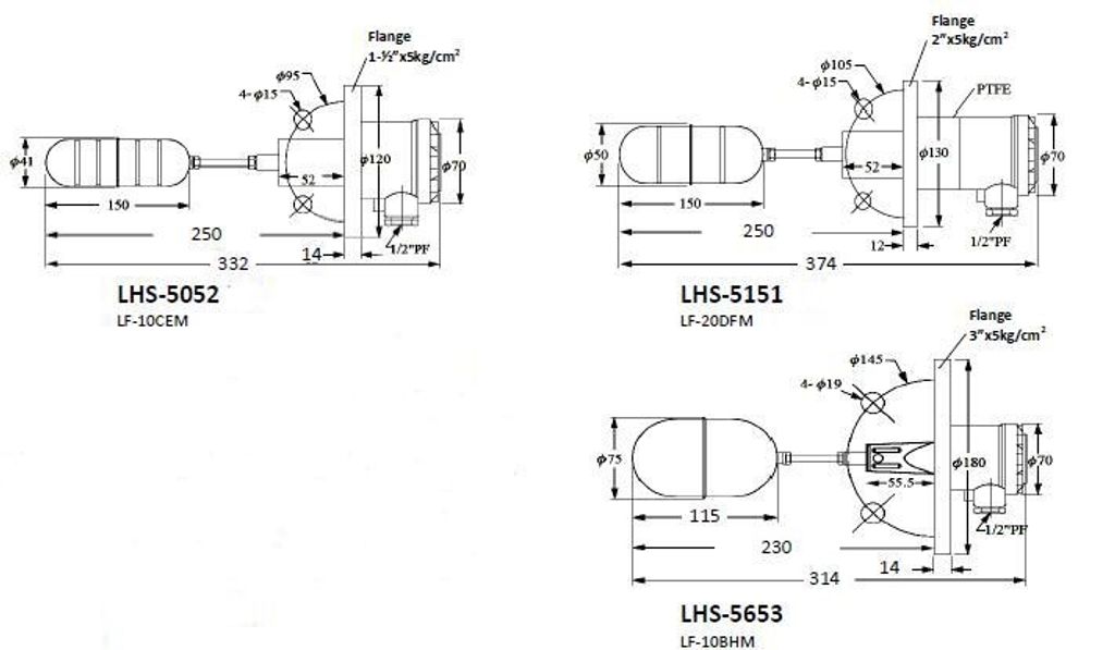 LHS 5052 | -10 to 110 | 5A /250 VAC, SPDT | PCD : 95, 4 x Ø 15 | 1½", Ø 120 mm | 0.55 / 20 bar |