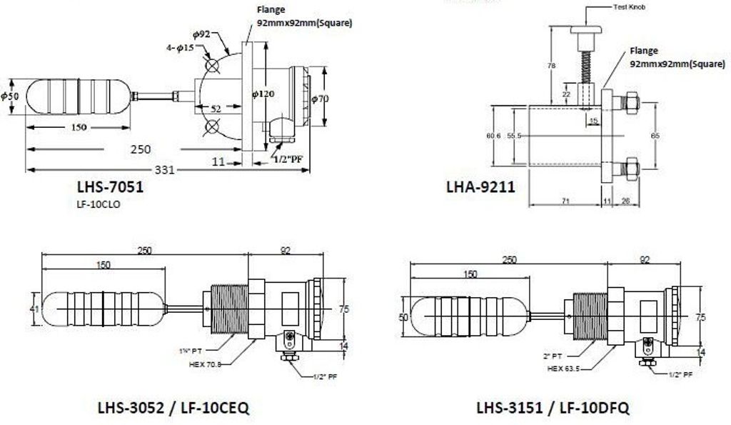 LHS 3151 | -10 to 100 | 5A /250 VAC, SPDT | Screw-plug | 2" NPT HEX 63.5 | 0.55 / 30 bar |